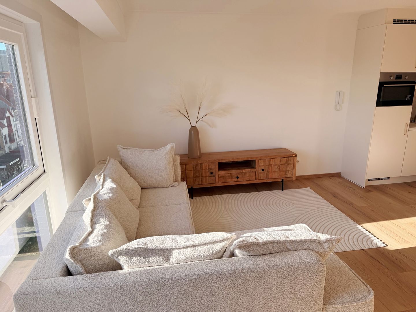 Résidence OLD FISHER : au 5? étage, superbe appartement entièrement rénové et meublé avec goût, alliant style, confort et emplacement idéal à Westende-bains. Le séjour ensoleillé bénéficie d’une magnifique lumière naturelle l’après-midi et offre une vue dégagée sur les charmantes villas côtières ainsi que sur la pittoresque place des Portiques. La cuisine ouverte, entièrement équipée avec des appareils modernes, est parfaite pour ceux qui aiment cuisiner dans une atmosphère conviviale. La salle de bain, rénovée avec soin, dispose d’une douche élégante, d’un meuble lavabo avec miroir éclairé et d’un raccordement pour machine à laver. La chambre, située à l’arrière, garantit calme et tranquillité pour des nuits paisibles. Dès l’entrée, une armoire de rangement pratique fait office de vestiaire. La toilette est séparée. Tout a été refait : châssis de fenêtres, sols, électricité, avec une conformité électrique selon les normes en vigeur. Atout supplémentaire : quatre emplacements de parking communs sont à disposition et son exclusivement réservés aux propriétaires de l’immeuble.