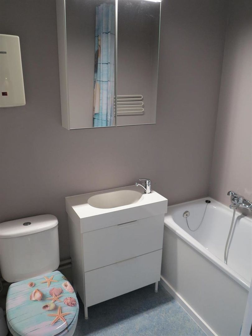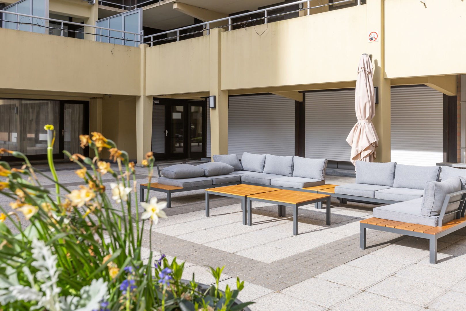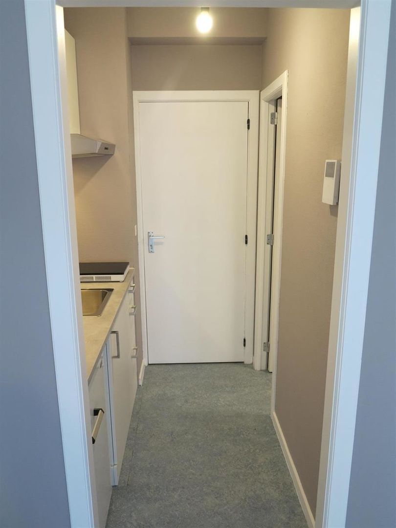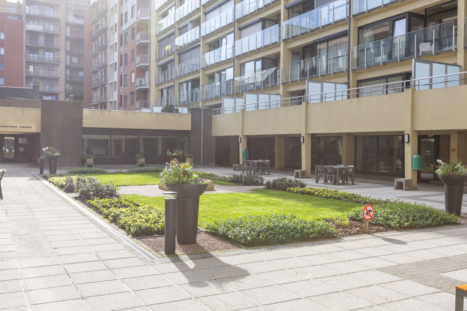 Résidence WESTEND PALACE C1 : dans le centre, au 4ième étage à l'arrière de la résidence, petit studio (18m²) non-meublé, comprenant: hall d'entrée avec kitchenette, living avec terrasse et salle de bain avec baignoire et toilette. Chauffage électrique individuel. Installation électrique conform au RGIE. Résidence avec piscine couverte et jardin privé.