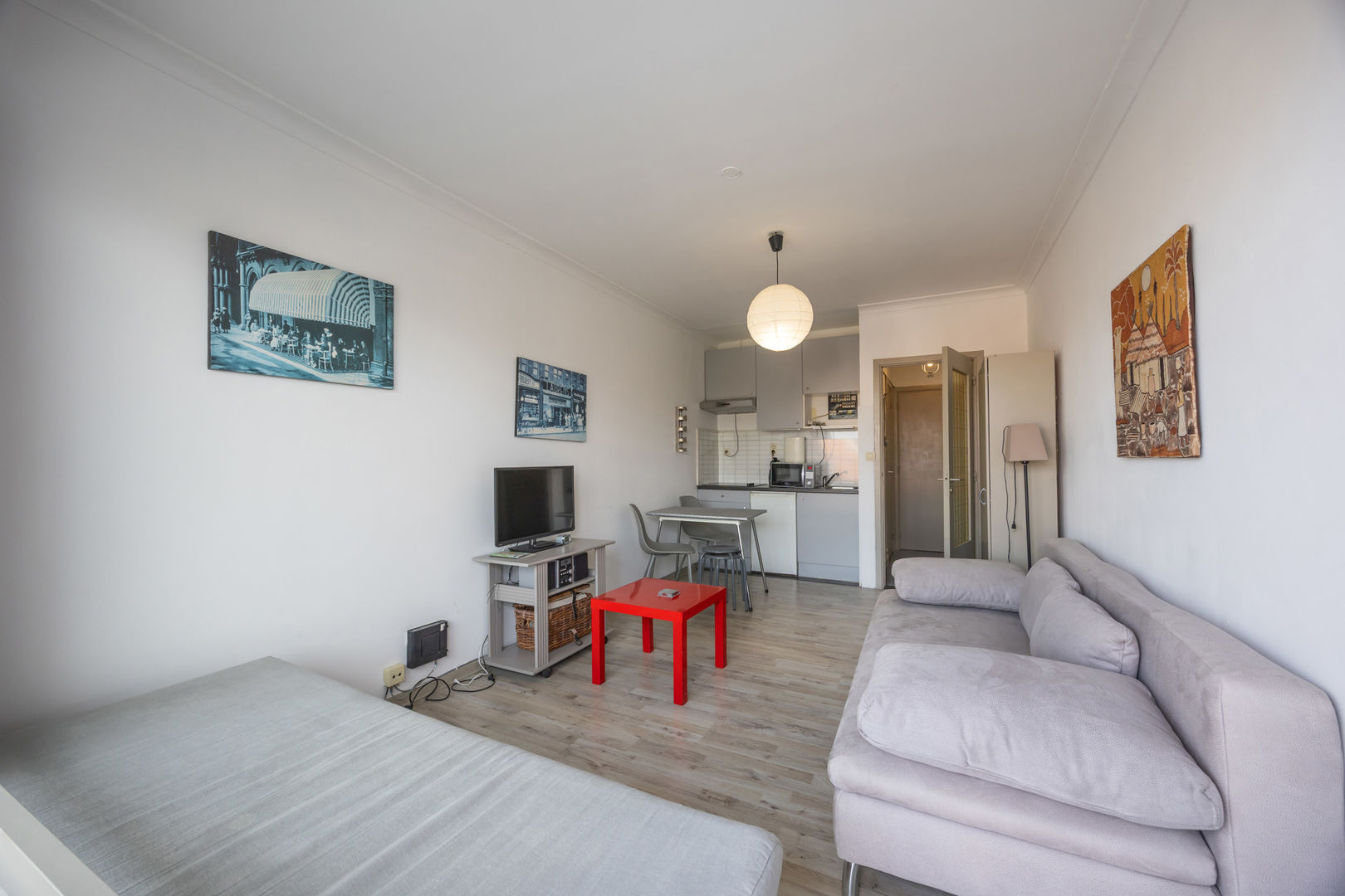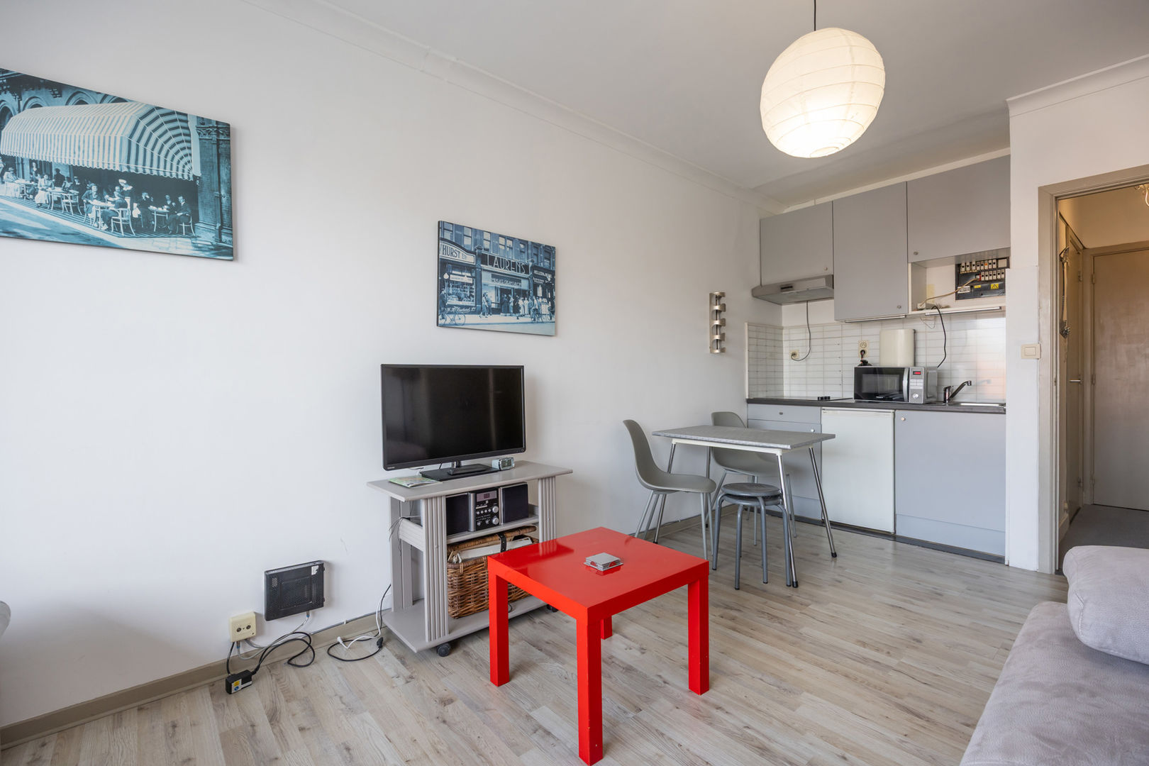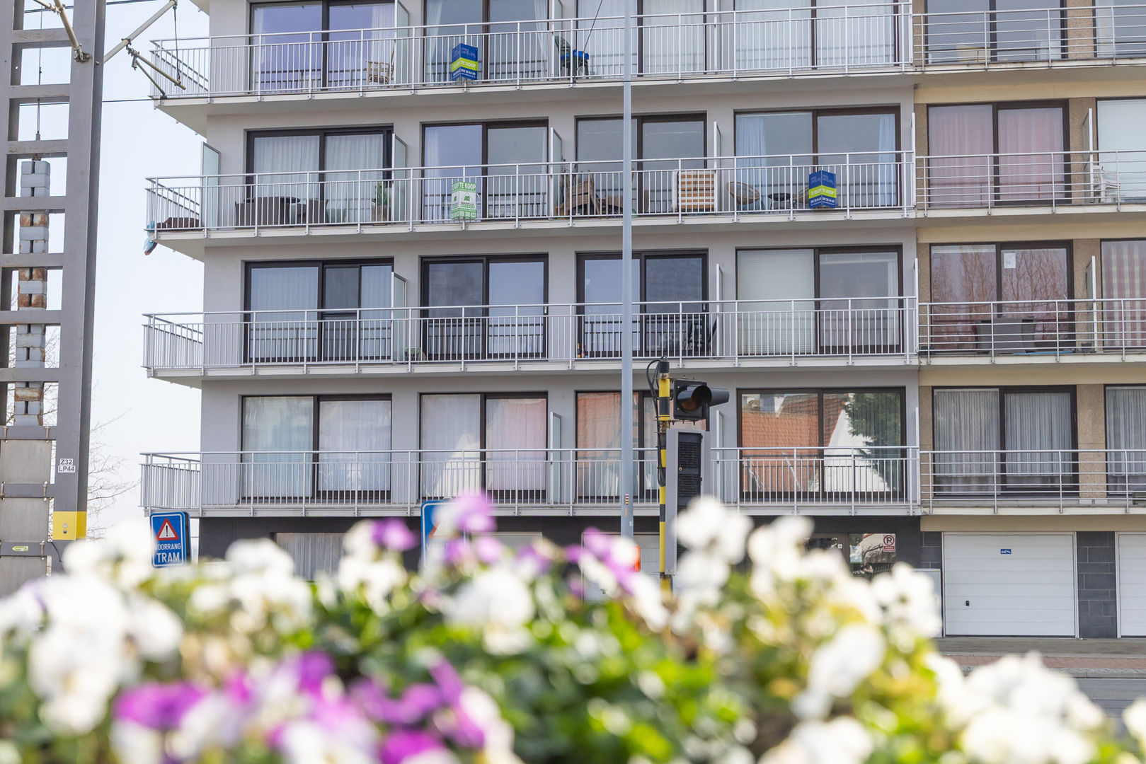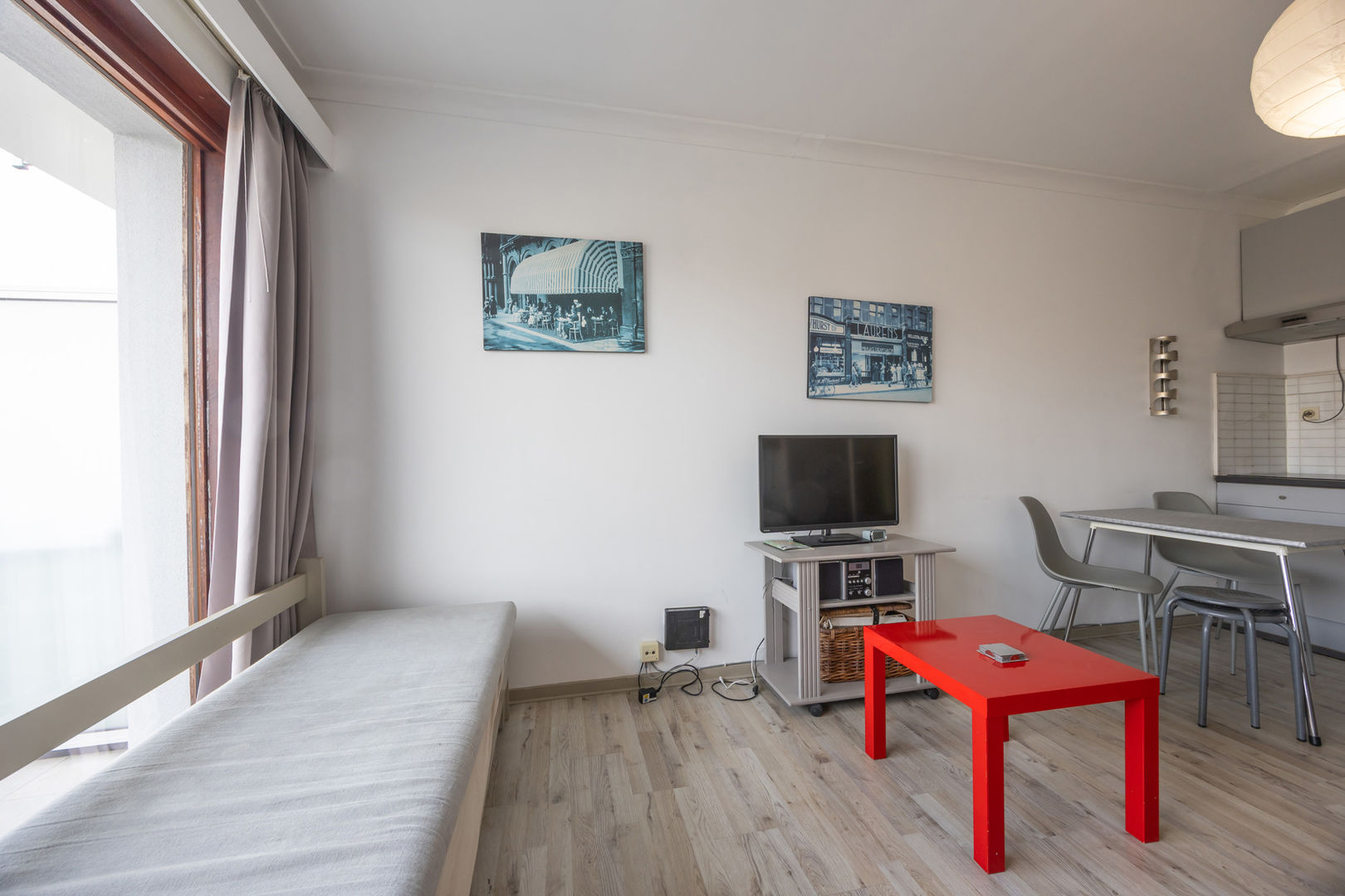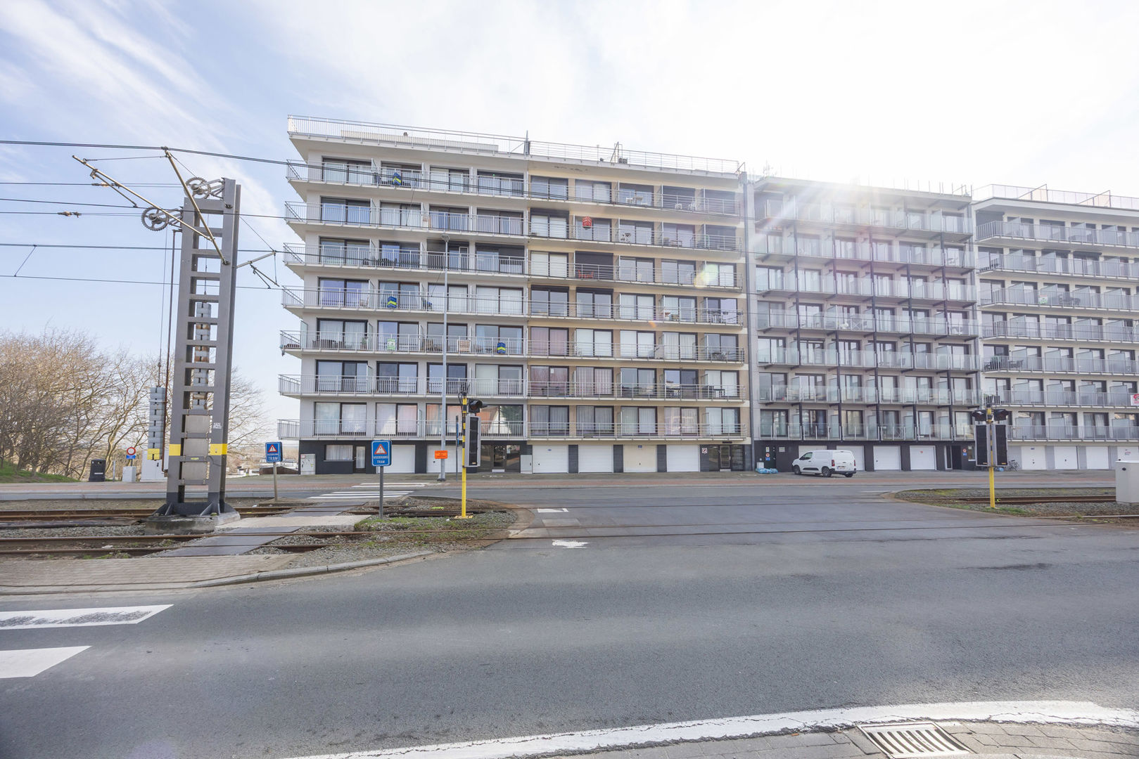 Résidence WANAKA : Au 3ième étage le long de la route du tram avec vue dégagée sur les anciens terrains de tennis et de loin sur la mer, studio meublé, comprenant : un hall d'entrée avec vestiaire, living avec cuisine murale et terrasse et salle de bains avec douche, lavabo et toilette. Cave privée au sous-sol incluse dan sla vente. Chauffage électrique. Résidence avec local à vélos et dont les façades et les terrasses ont été entièrement rénovées en 2024. NB: le double vitrage qui est condensé et que l'on voit sur les foto's va être remplacé.