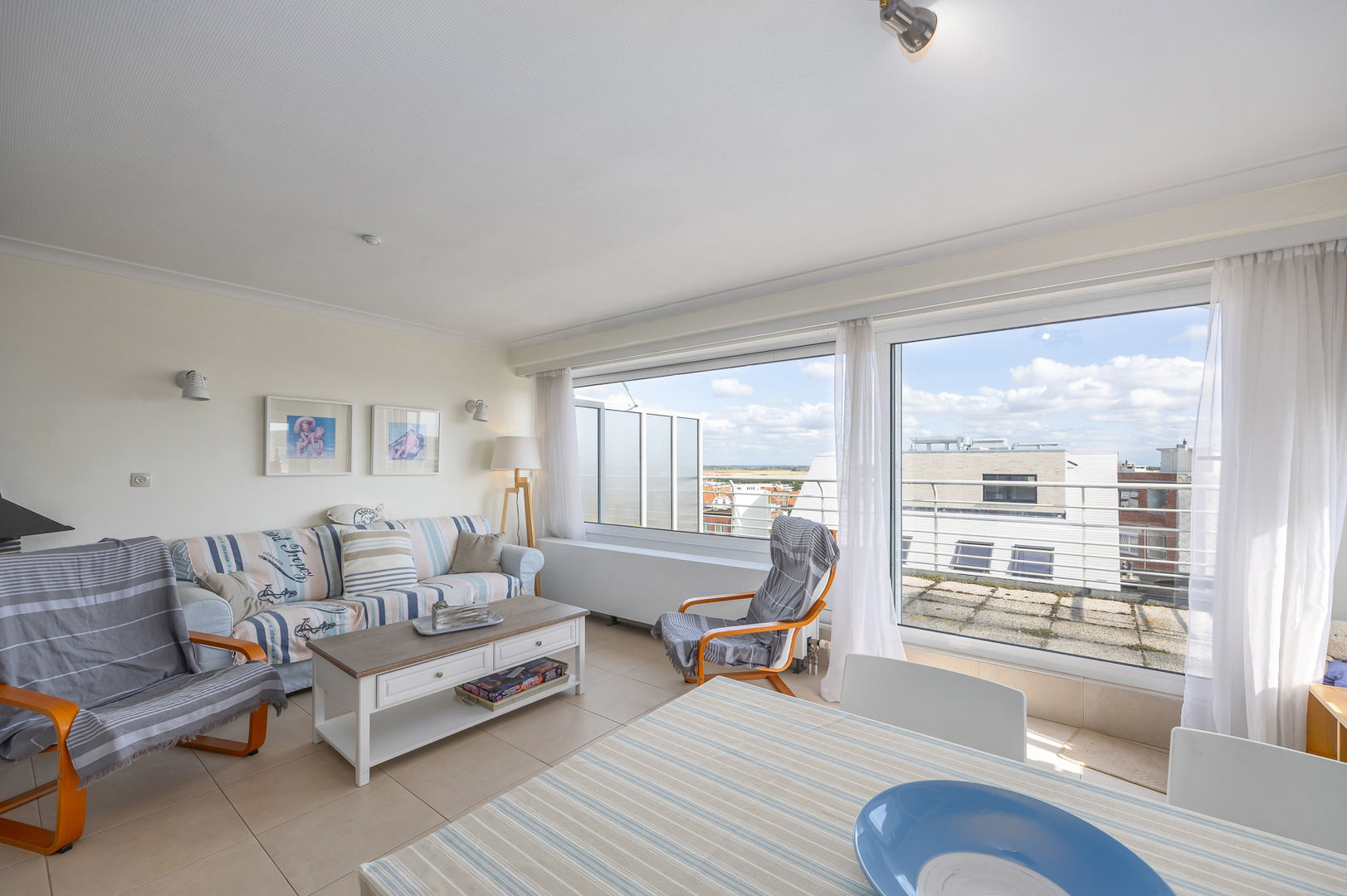 Residentie SUN VALLEY : Instapklaar dakappartement met 3 slaapkamers en zonnig terras op de 5de verdieping. Op zoek naar een ruim en lichtrijk dakappartement met een groot terras? Dan is dit aangename appartement op de 5de verdieping zeker een bezoek waard. Het appartement beschikt over een ruime leefruimte met veel natuurlijk licht en een gezellige zithoek, aansluitend op de eetplaats. Vanuit de leefruimte heeft u directe toegang tot het ruime, zonnige terras, waar u in alle rust kan genieten van de buitenlucht en het open zicht – ideaal om te ontspannen of gasten te ontvangen. De functionele keuken is praktisch ingericht en staat in verbinding met de leefruimte. Verder telt het appartement drie volwaardige slaapkamers waarvan een met terras, waardoor het perfect geschikt is als gezinswoning, tweede verblijf of investering. De badkamer is uitgerust met een ligbad en lavabomeubel, terwijl het aparte toilet extra comfort biedt. Dankzij de ligging op de bovenste verdieping geniet u van privacy en rust. De indeling is logisch en comfortabel, met voldoende bergruimte en een aangename sfeer doorheen het hele appartement. Residentie met fietsenberging en gelegen dichtbij de zeedijk, handelszaken en openbaar vervoer. Achtergevel in 2025 gerenoveerd en geïsoleerd.