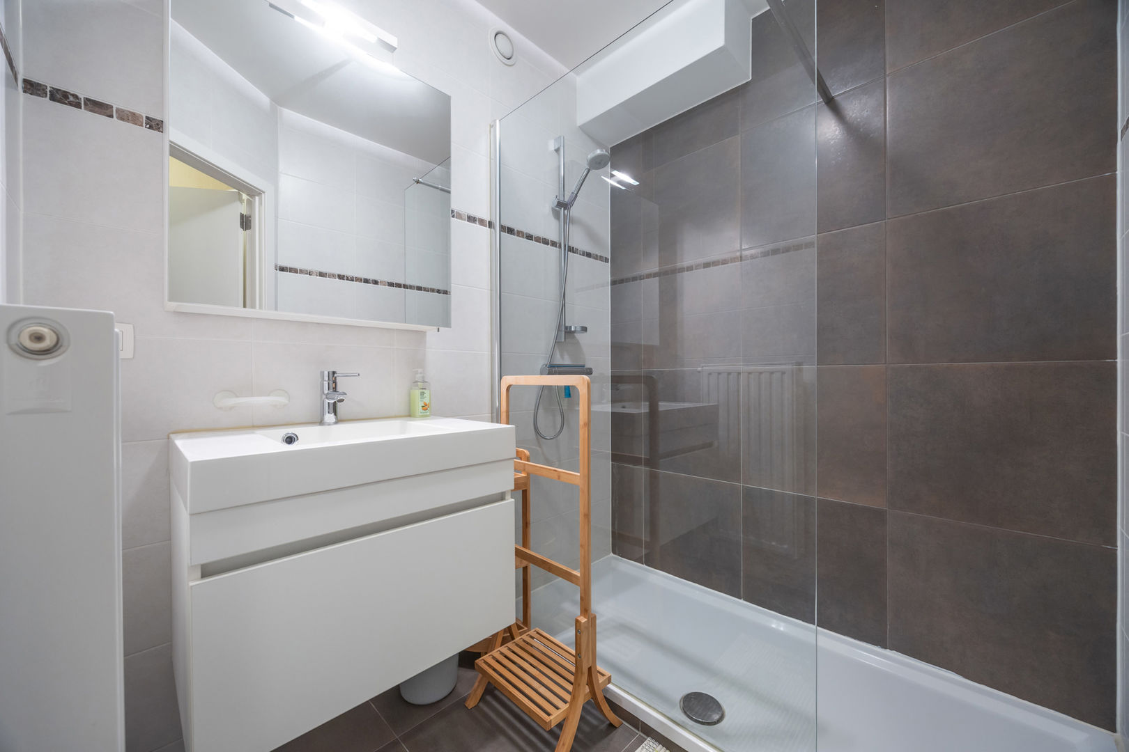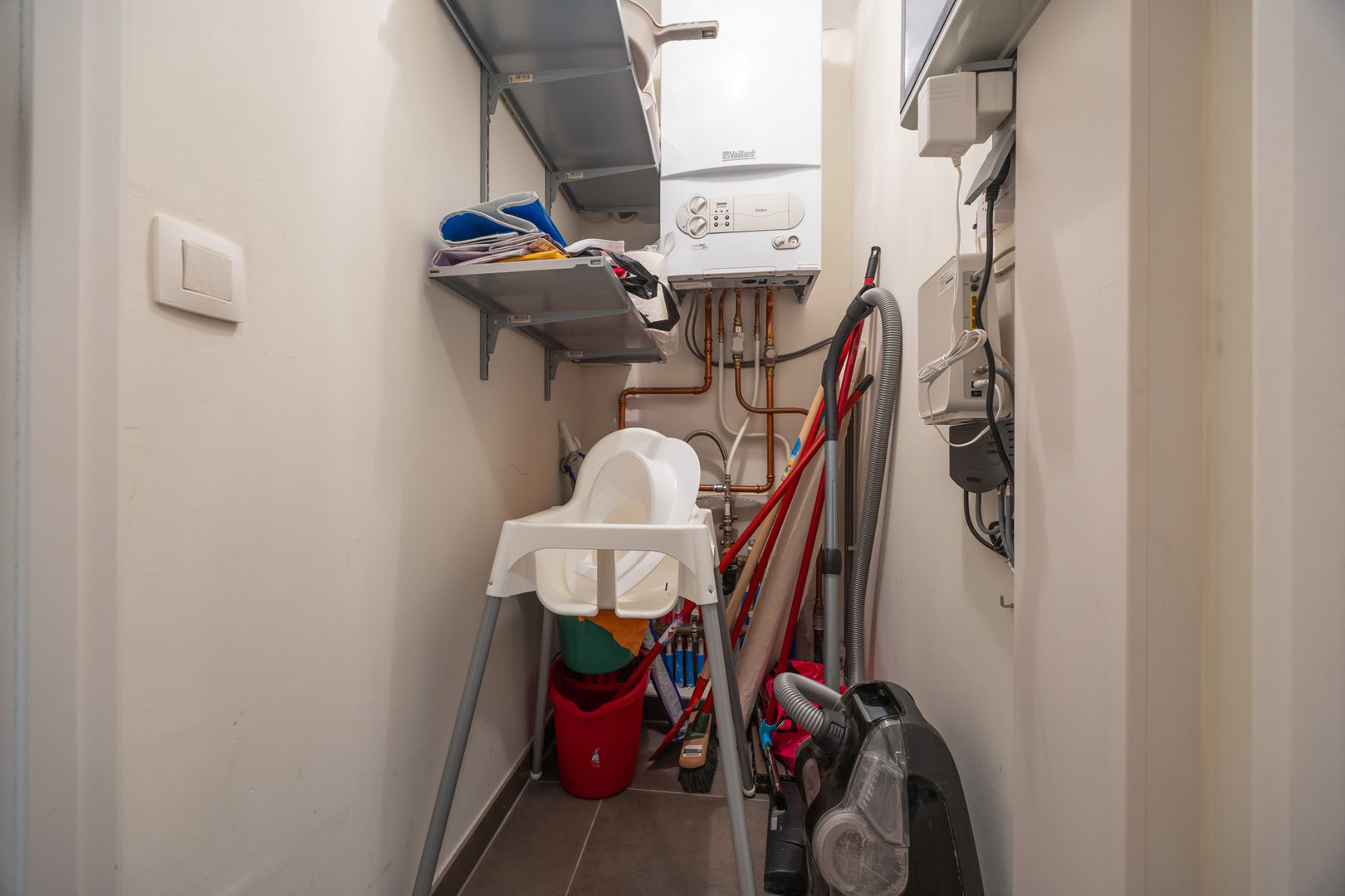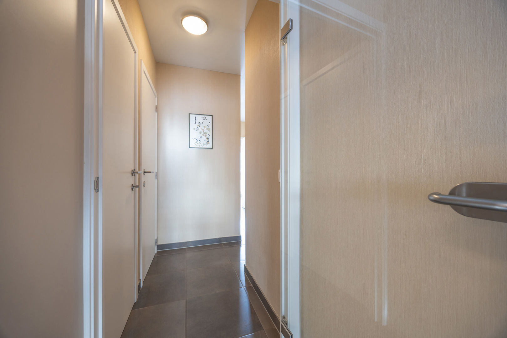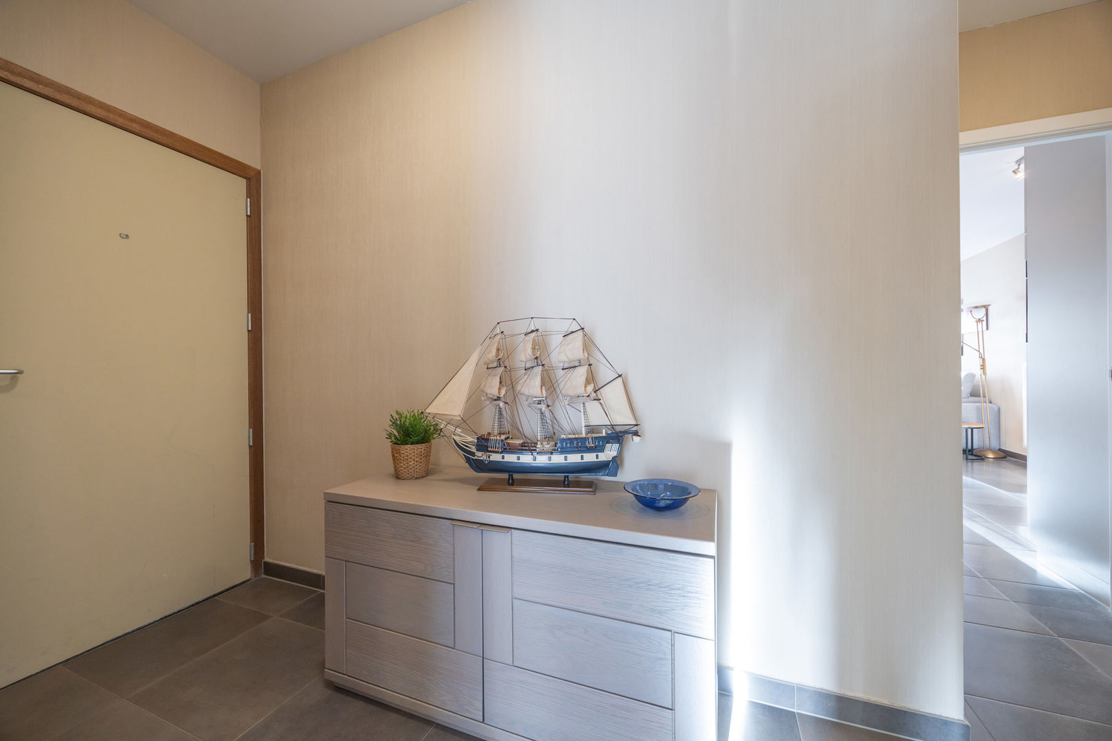Verder zijn er twee volwaardige slaapkamers, een moderne badkamer met douche en lavabomeubel, en een apart gastentoilet. De inkomhal biedt extra opbergruimte en zorgt voor een vlotte circulatie in het appartement. Er is ook een private kelderberging inbegrepen.