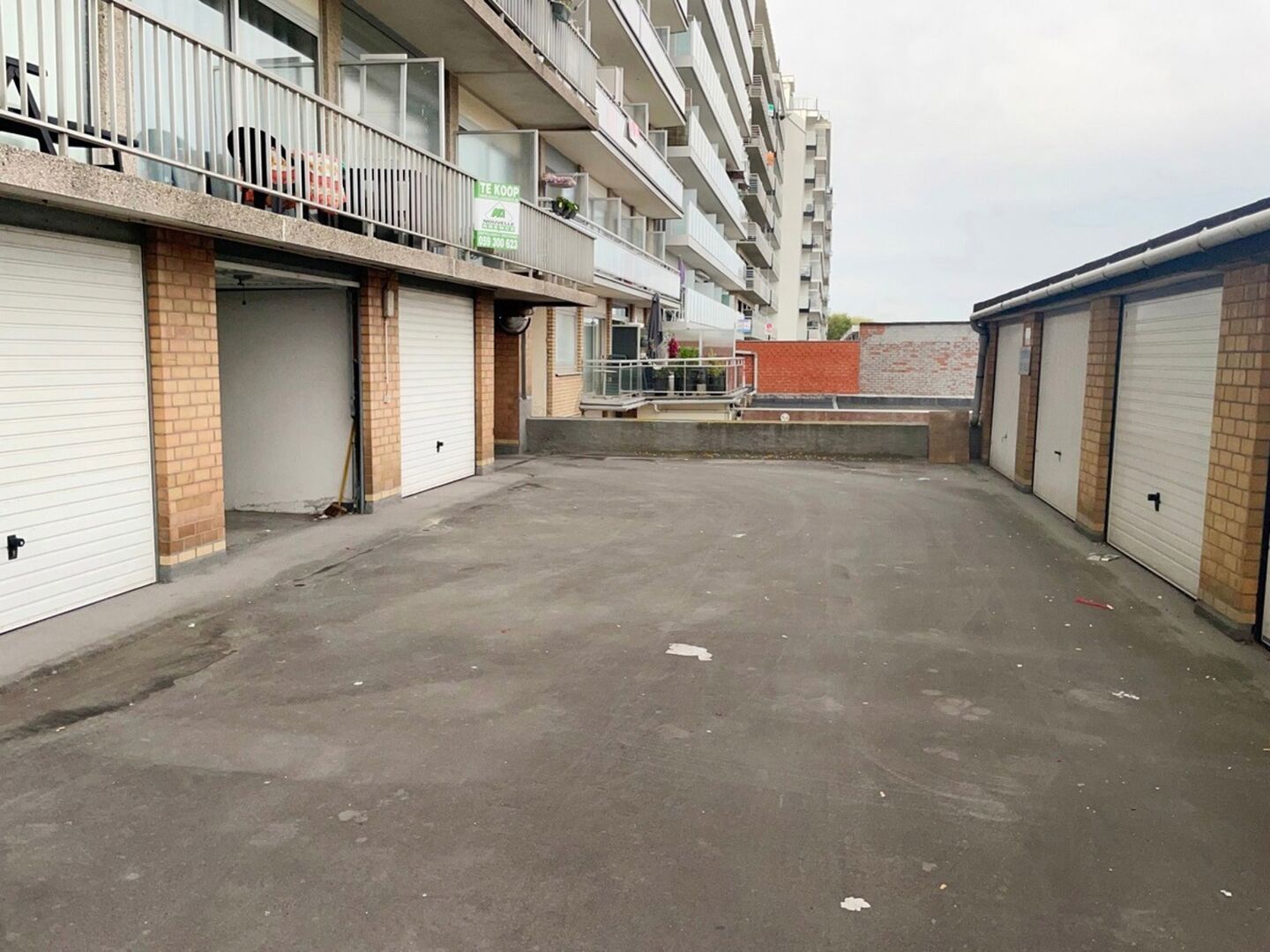 Residentie ROYAL : op het gelijkvloers met inkom langs de Henri Jasparlaan, ruime gesloten garage voor 2 à 3 wagens gelegen achter de residentie. Oppervlakte van +/- 33,00m² (11m00 x 3m00). Hoogte aan de deur: 2m30 - Hoogte garage zelf: 2m60. Met kantelpoort. Elektriciteit/verlichting aanwezig maar niet aangesloten.