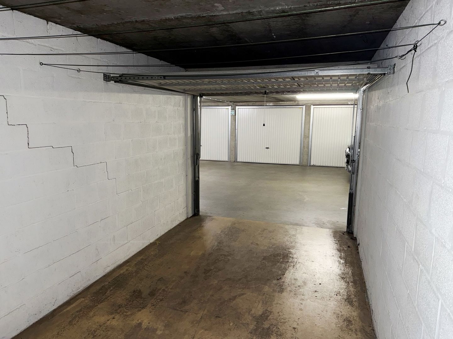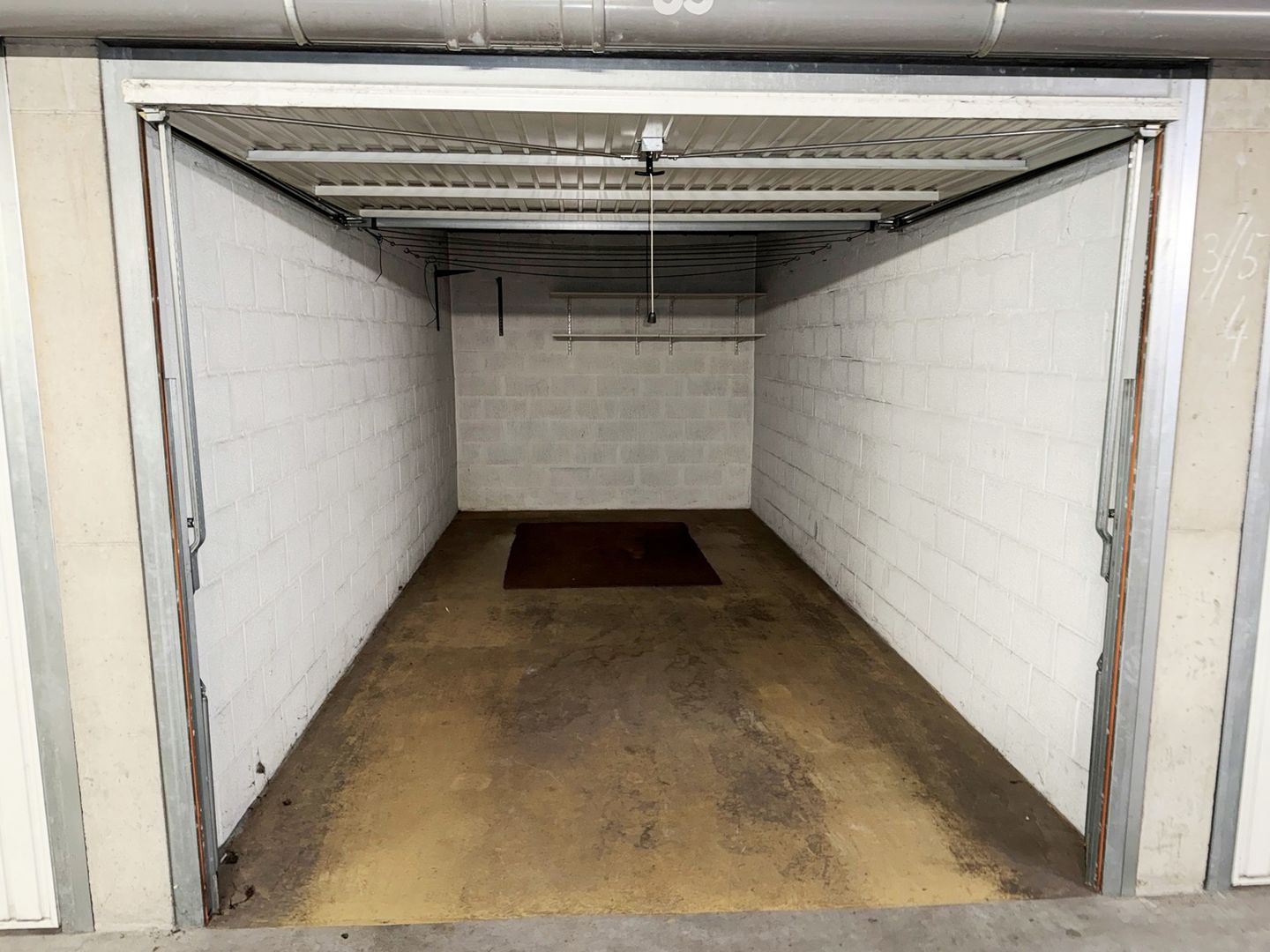 Residentie KATHY : over de trambaan met inkom langs de Badenlaan 41, individuele gesloten garage van +/- 15m². Diepte : 5m65; Breedte : 2m65; Hoogte aan de deur : 2m00; Hoogte garage zelf : 2m45. Beschikbaar aan de akte.